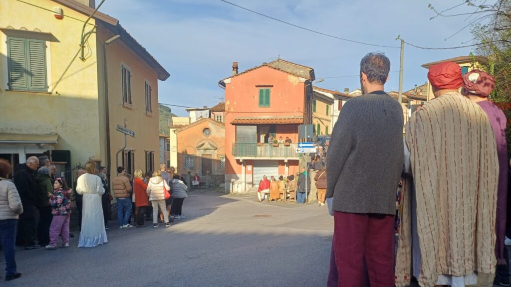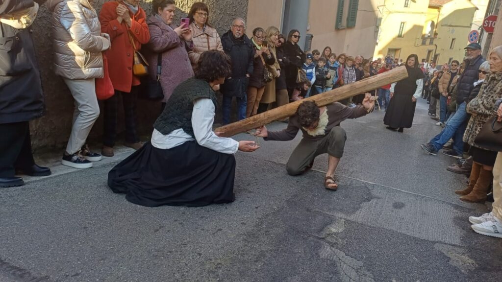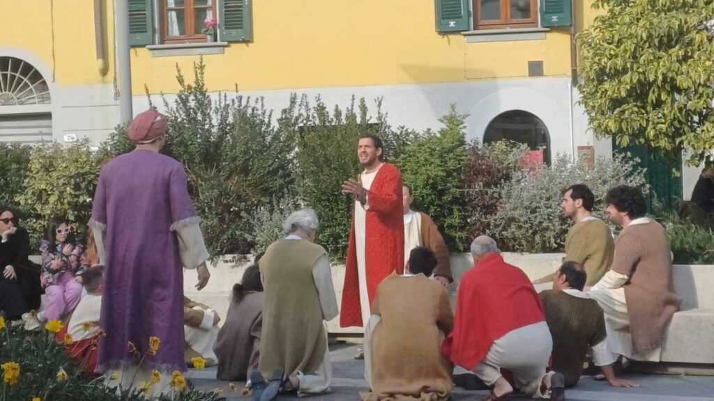 Lo spettacolo visto da me era anche itinerante, nel senso che il pubblico seguiva il cast per le vie del paese, dove venivano sapientemente realizzate le scene. Così il ruscello che passa per il paese diventa il fiume Giordano, la piazza il luogo dell’incontro tra Cristo e gli apostoli, la salita invece simbolo delle cadute di Cristo con la croce in spalla (tendenzialmente la terza, la settima e la nona stazione della Via Crucis). Le istantanee, per la qualità dei costumi, la bravura degli attori e anche l’intelligenza delle location, potevano tranquillamente essere delle opere d’arte.